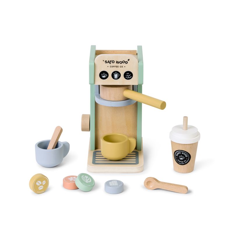 This super cool coffee set will be the perfect addition to your child’s favorite play kitchen. Your little one will have a blast making delicious drinks. Simply choose a capsule, insert it into the top slot of the coffee maker, turn the pot, and the capsule will fall into the cup. With the click-click dial on the side, they can easily select the coffee they want to serve.